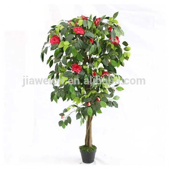 Small Artificial Decorative Camellia Flower Trees Wood Trunk
