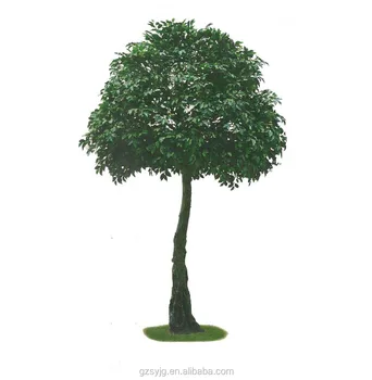 Indoor Decorative Yellow Edge Plastic Leaves Wooden Real Trunks
