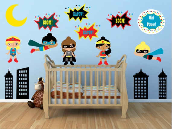 Superhero Wall Decals Girls Room Wall Decals Nursery Wall Etsy