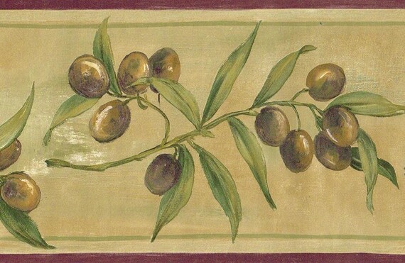 Tuscan Wall Decor Olive Branch Wallpaper Border Tree Etsy