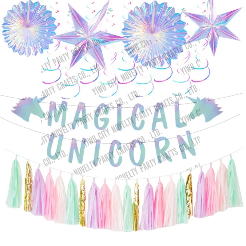 Set the mood with unicorn decorations like balloons wall decals and banners and transform your guests with a range of unicorn party hats and wearables. There are lots of great unicorn party supplies from wholesale party supplies. Unicorn party supplies decorations enjoy this magical 149 pieces unicorn birthday decor kit for girls including cute goody boxes this fashionable unicorn party decoration supply set will leave long lasting memories unicorn themes serves 12.