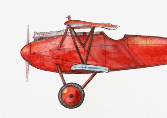 Vintage Red Airplane Decor Propeller Aircraft Albatros Print Etsy