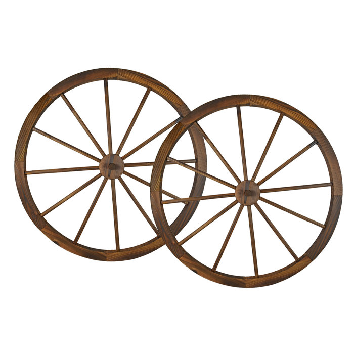 Set Of 2 30 Decorative Vintage Wood Garden Wagon Wheel Wall