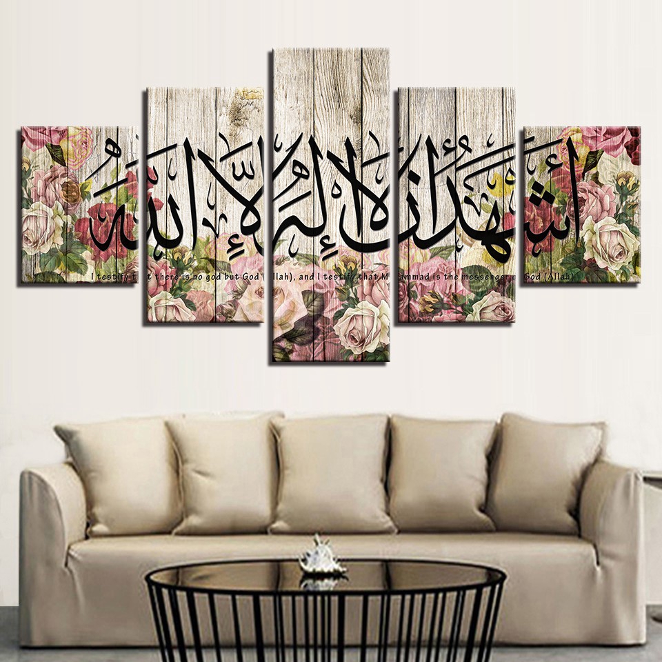 Muslim Calligraphy Arabic Islamism Prints Flower Canvas Paintings