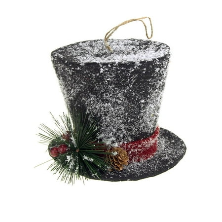 Black Hanging Top Hat With Snow Christmas Decoration 5 Inch