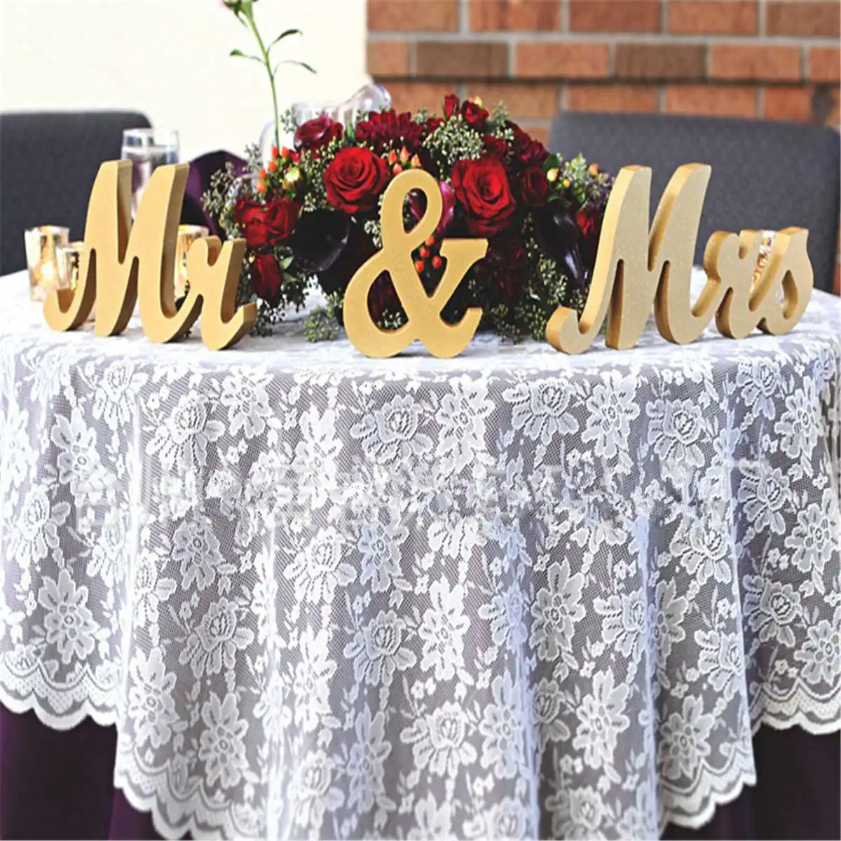 Aruchinjiru Best Gold Wooden Mr Mrs Standing Letters Wedding