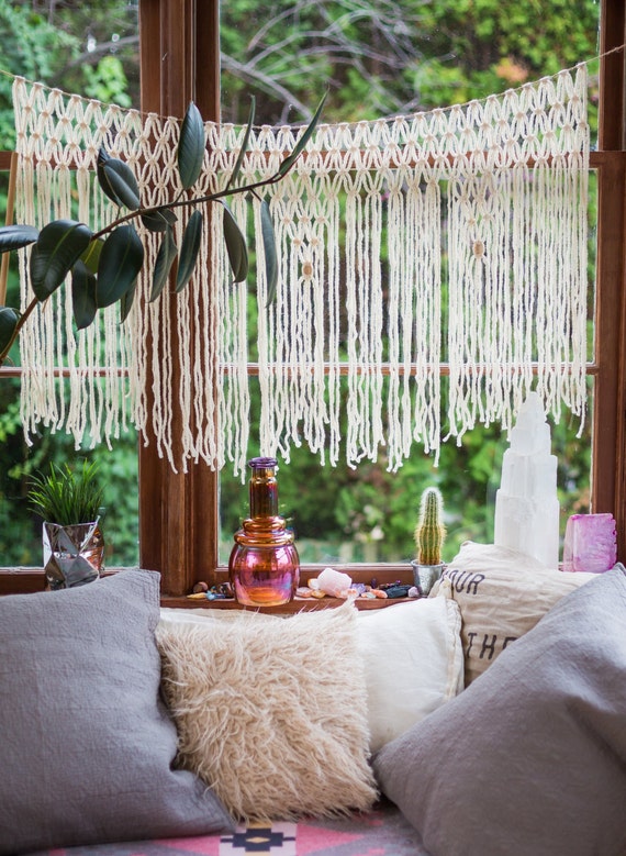 Ivory Modern Macrame Hanging For Boho Window Decor Or Wall Etsy