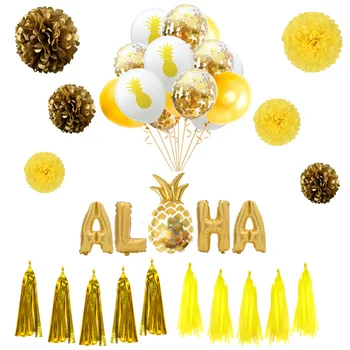 Yellow And Gold Pompoms Tassels Confetti Latex Balloons Party