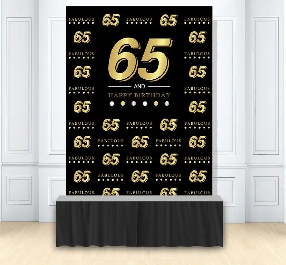 Huayi 65th Birthday Golden Backdrop For Adults Birthday Carnival