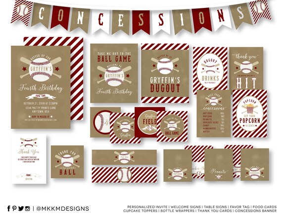 Baseball Birthday Party Kit Baseball Invitation Baseball Party