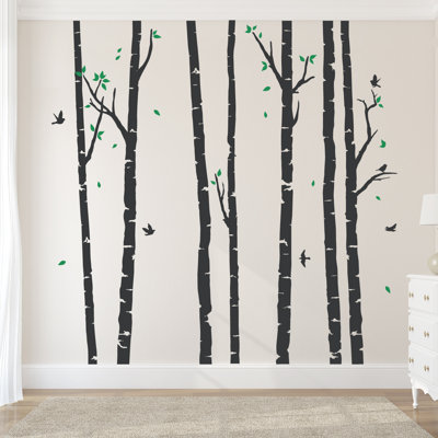 Luckkyy Large Set Of 7 Birch Tree Deer Wall Decal Forest Birch