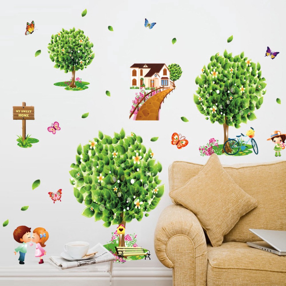 Green House Tree Bird Wall Decals Sticker Home Living Room Decor