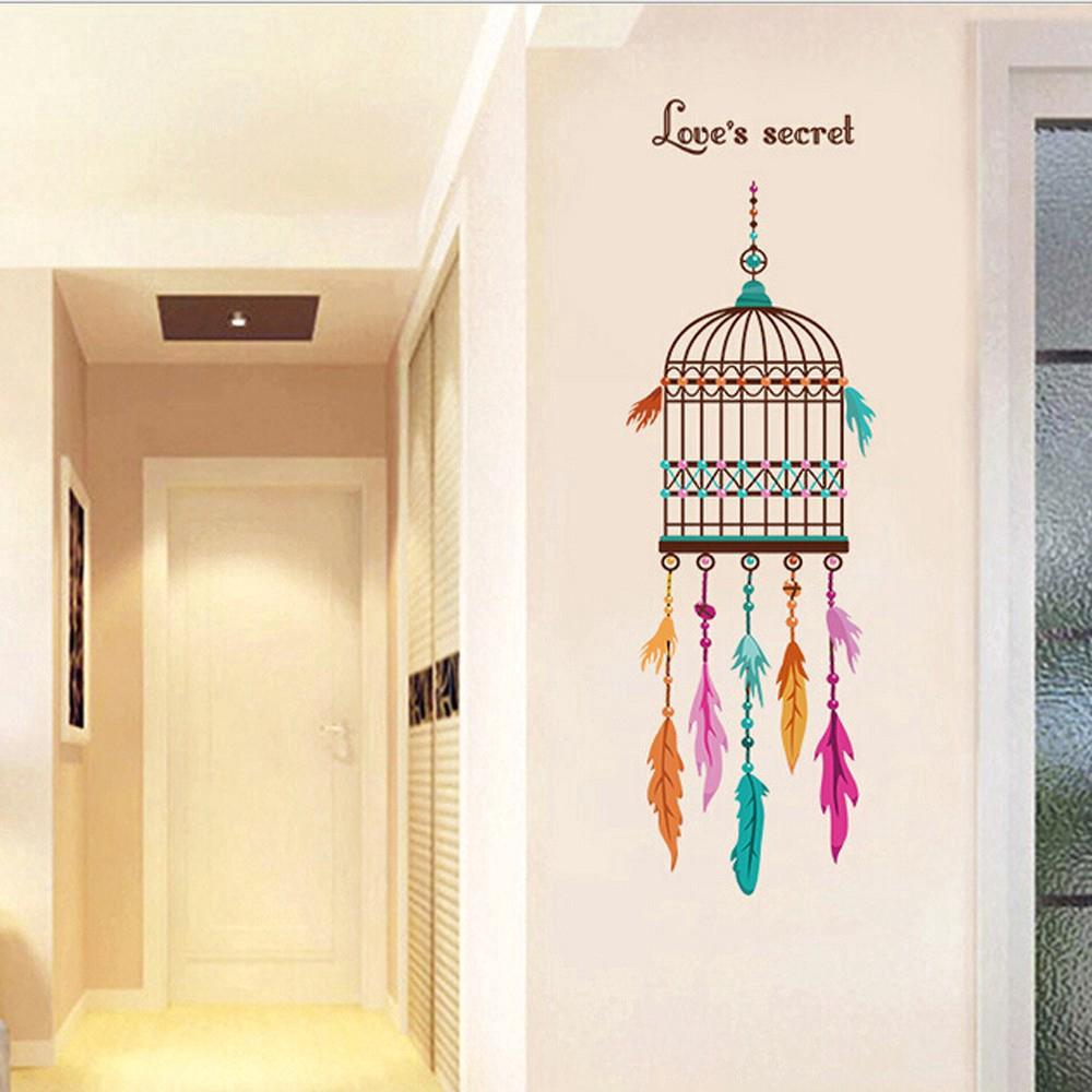 Feather Birdcage Wall Decals Sticker Home Living Room Decor