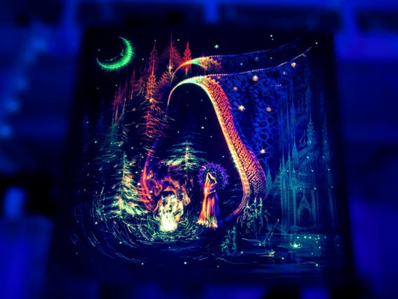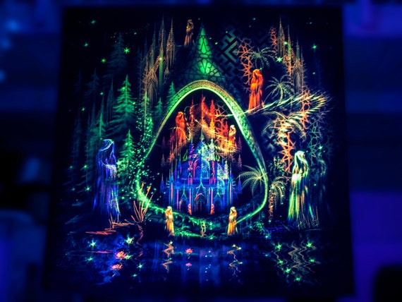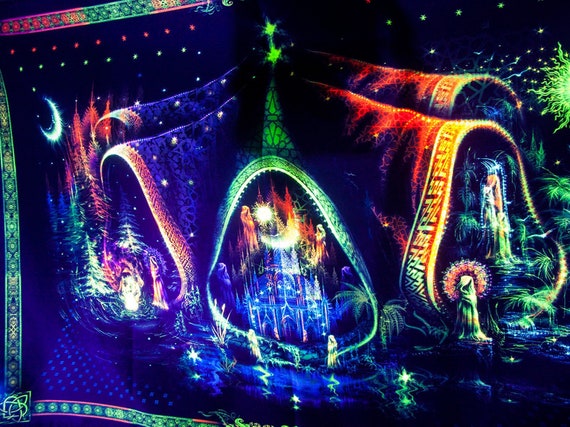 Blacklight Glow Tapestry Cosmic Monks Gathering Etsy