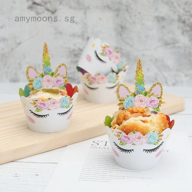 Cute Unicorn Cupcake Cake Wrappers Toppers Birthday Party Cake