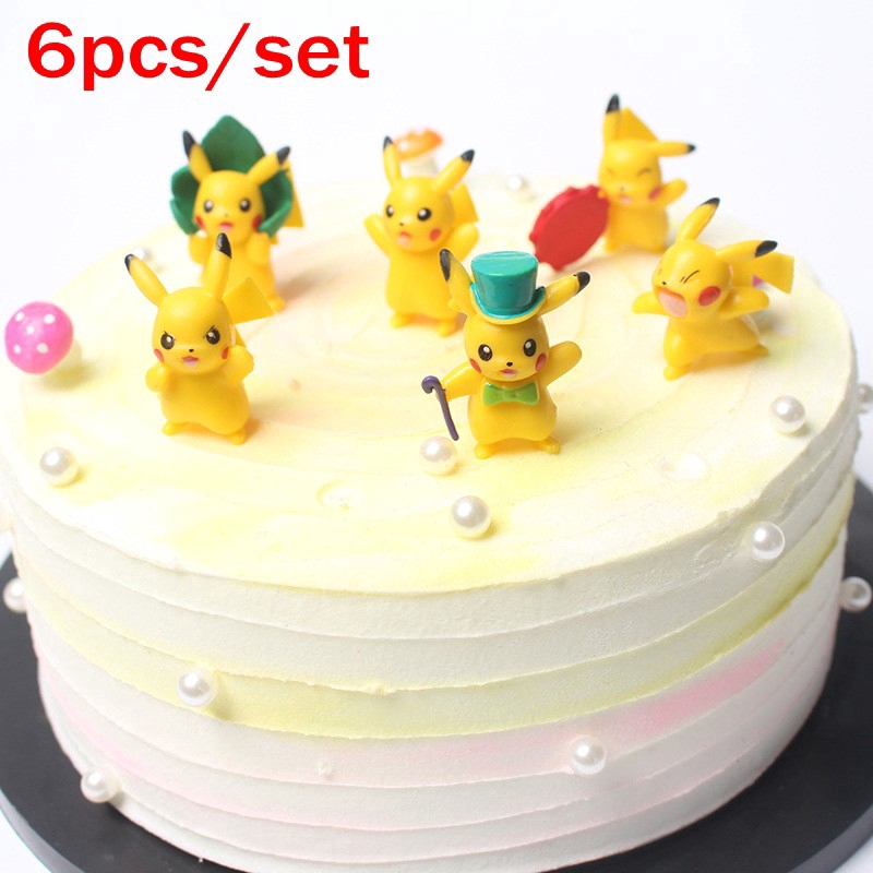 6pcs Set Pikachu Cake Decorations Cake Topper For Birthday Party