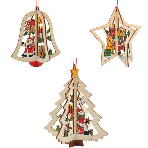 Hot Sale 3 Styles Creative Christmas Ornaments Carved Wooden