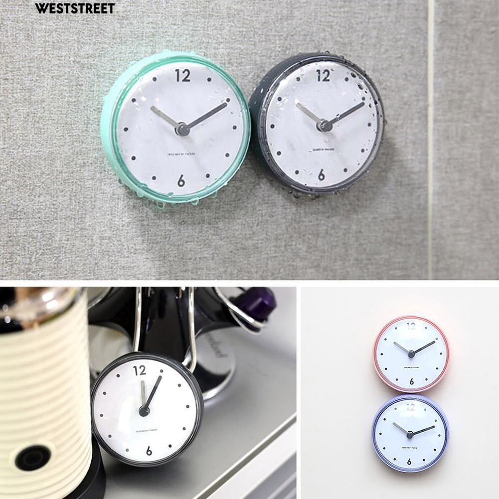 Bathroom Kitchen Waterproof Suction Cup Wall Clock Decor Shower