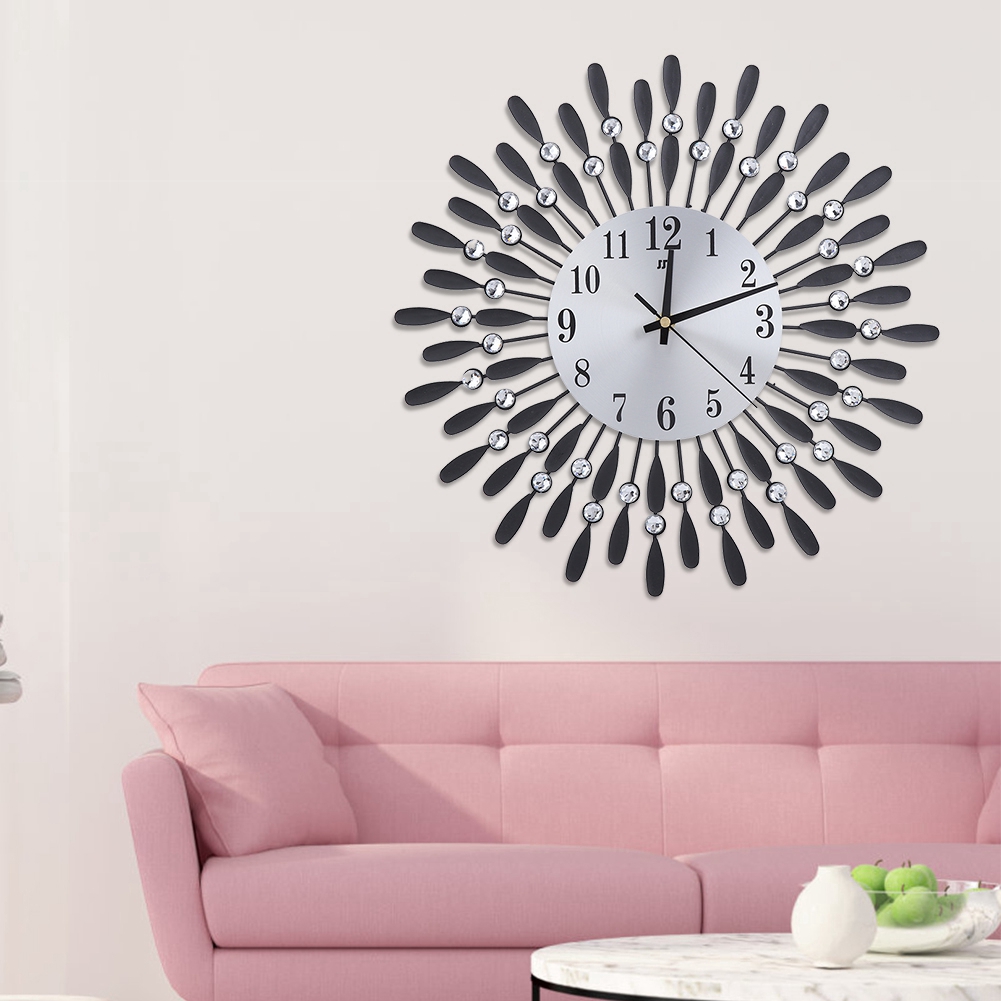 3d Crystal Iron Swing Mute Wall Clock Decor W Free Wall Hooks