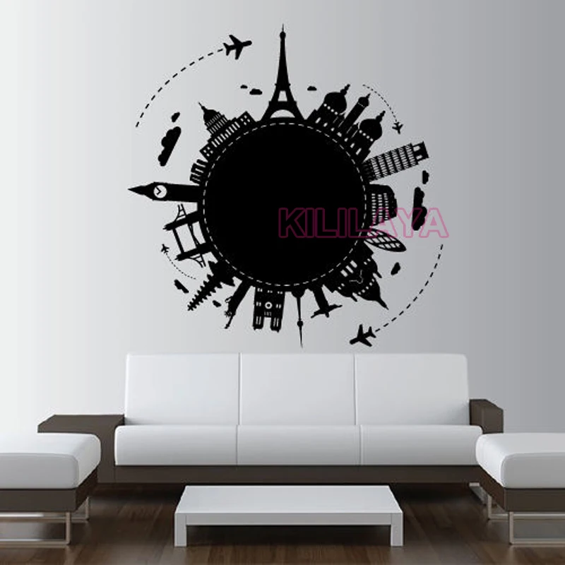 World Map Country Paris Rome Vinyl Wall Art Home Decor Wall