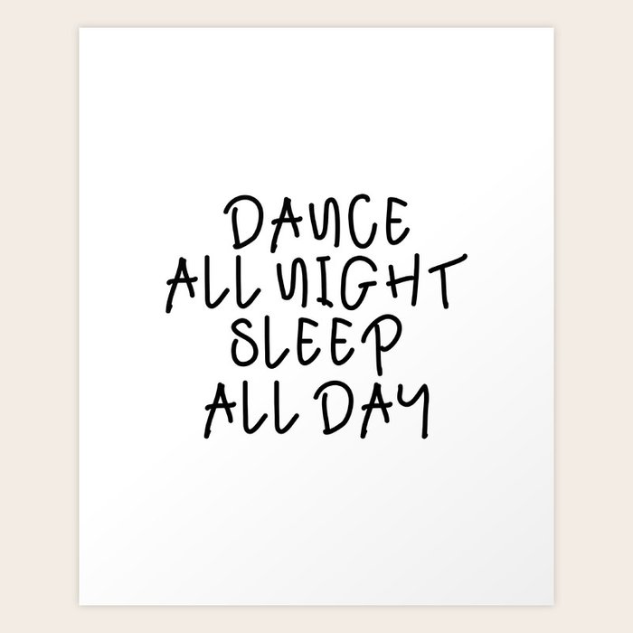 Dance All Night Sleep All Day Bedroom Wall Decor Feminine Dorm