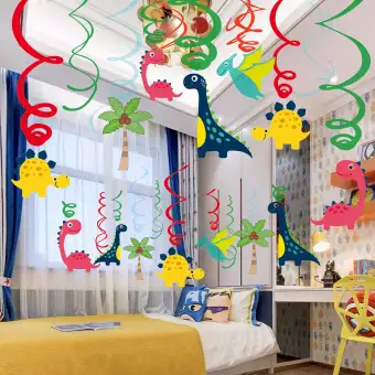 30pcs Hanging Swirls Cards Spiral Ornaments Dinosaur Theme Party