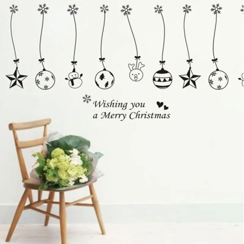 Christmas Christmas Balls Bells Hanging Chain Wall Sticker Home