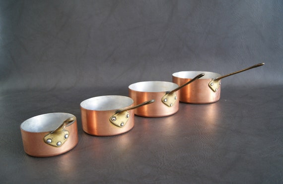 Copper Pots Vintage Casserole Copper Brass Pot Set Frying Etsy