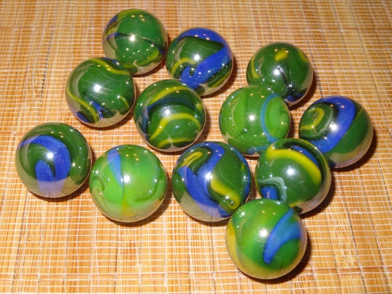 Mega Marbles Peacock Shooter 7 8 Glass Marbles Etsy