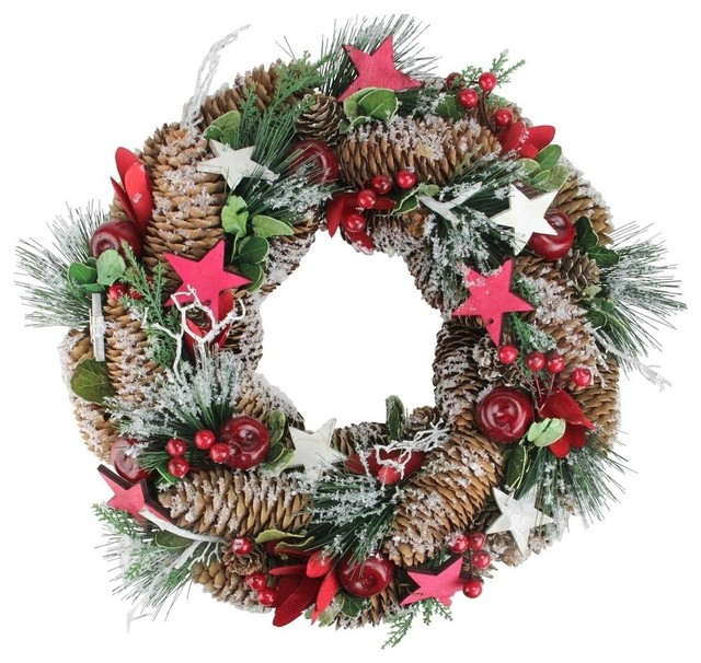 Stars Berries And Pine Cones Decorative Pine Christmas Wreath