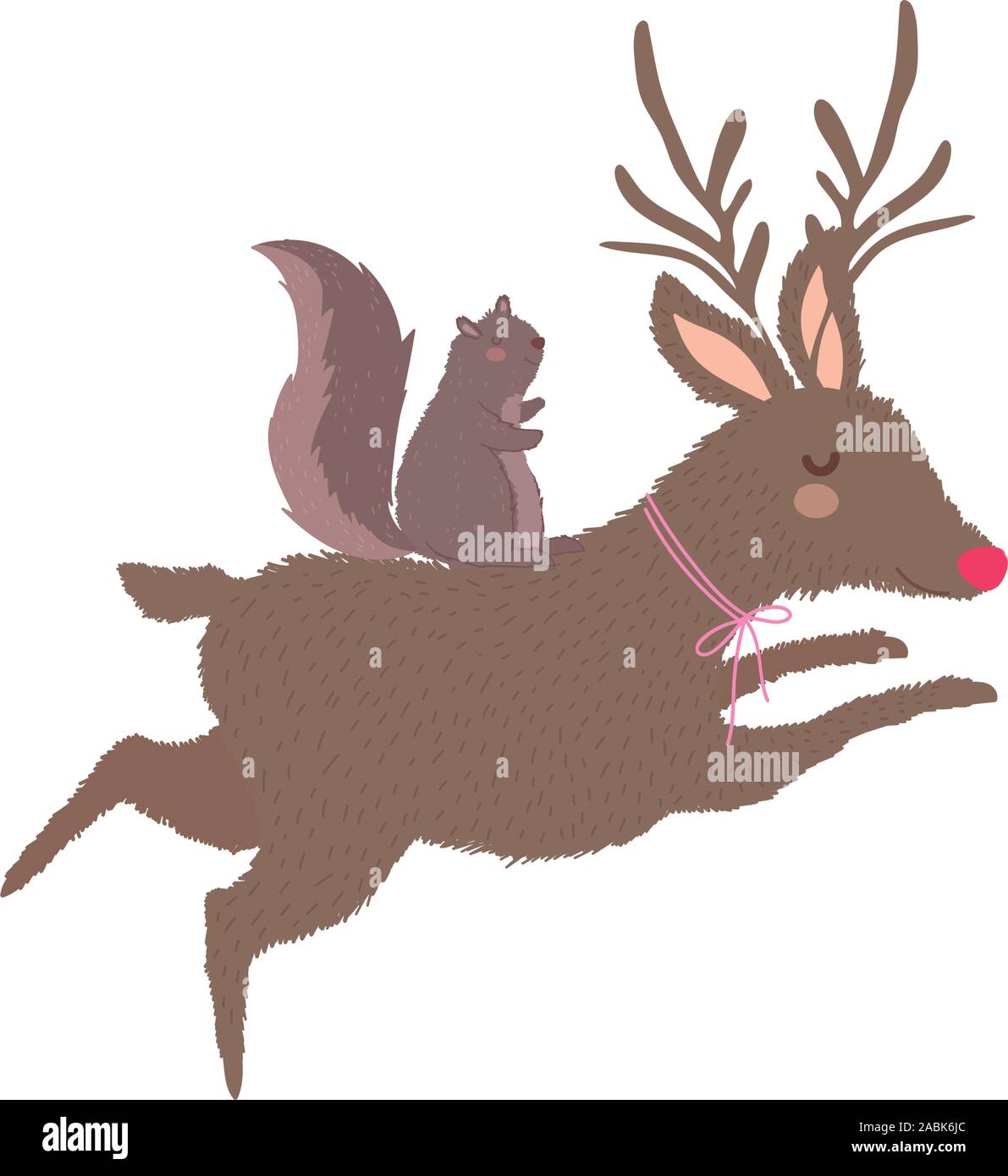 Merry Christmas Decorative Reindeer With Bow And Squirrel Vector
