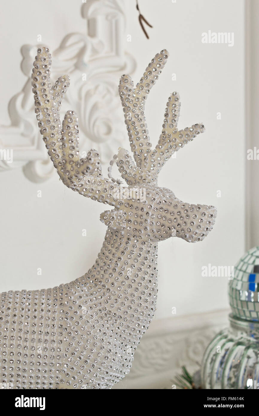 Decorative Figures Stag Figurine Reindeer Metal Silver Christmas