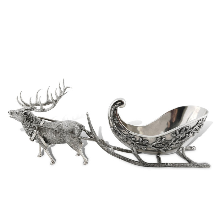 Vagabond House Lodge Pewter Reindeer Sleigh Centerpiece Decorative