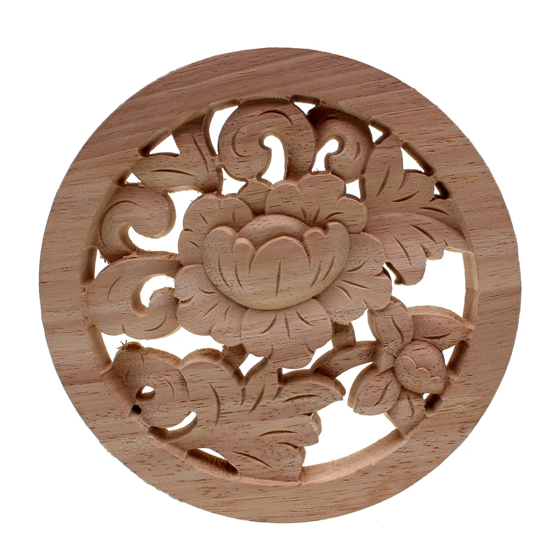 Carved Flower Carving Round Wood Appliques For Furniture Cabinet