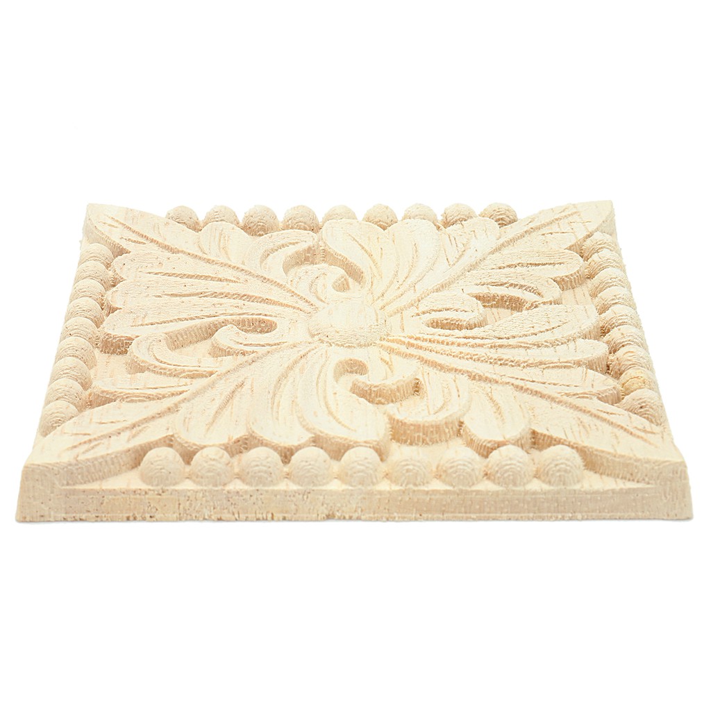 Natural Wood Appliques Square Flower Carving Decals Decorative