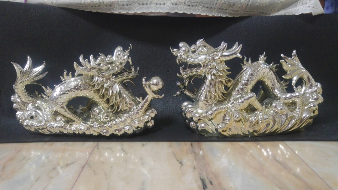 Twin Chinese Dragon Home Office Statue Figurine Decor Furniture