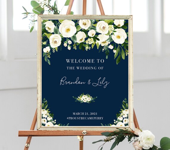 Navy Wedding Signs Elegant Wedding Decor Welcome Wedding Etsy