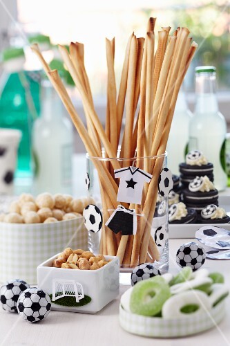 A Buffet Laid With Snacks And Football License Images