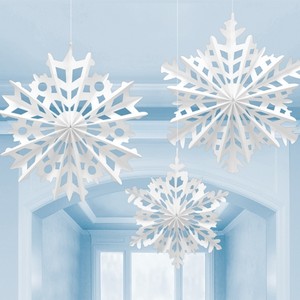 3 Snowflake White Paper Fans Christmas Winter Wonderland Frozen