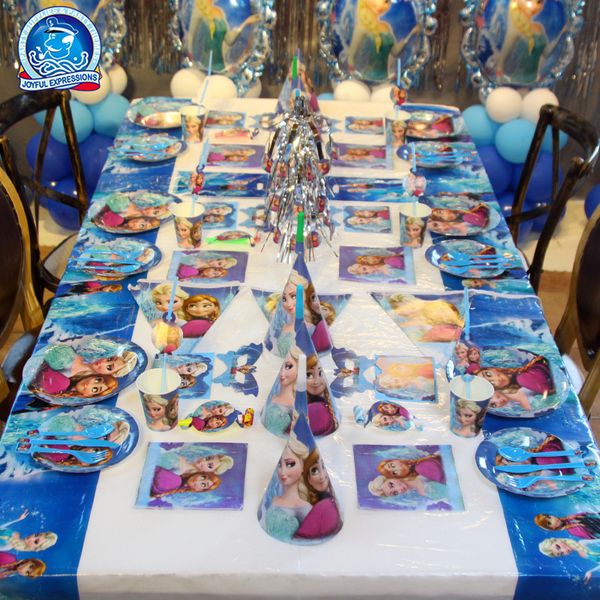 2020 Blue Frozen Princess Party Decoration Kit Plates Cups Napkins