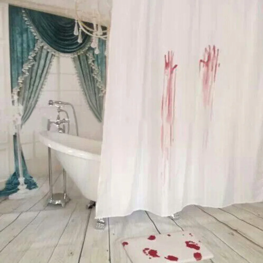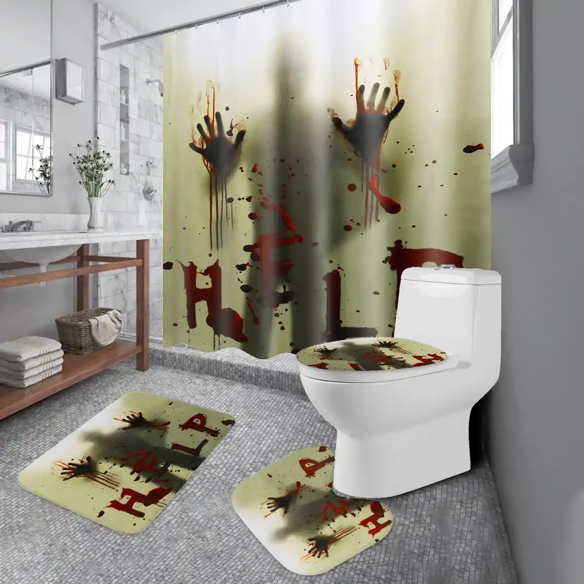 4pcs 180x180cm Bath Waterproof Curtain Scary Creepy Bloody Hand