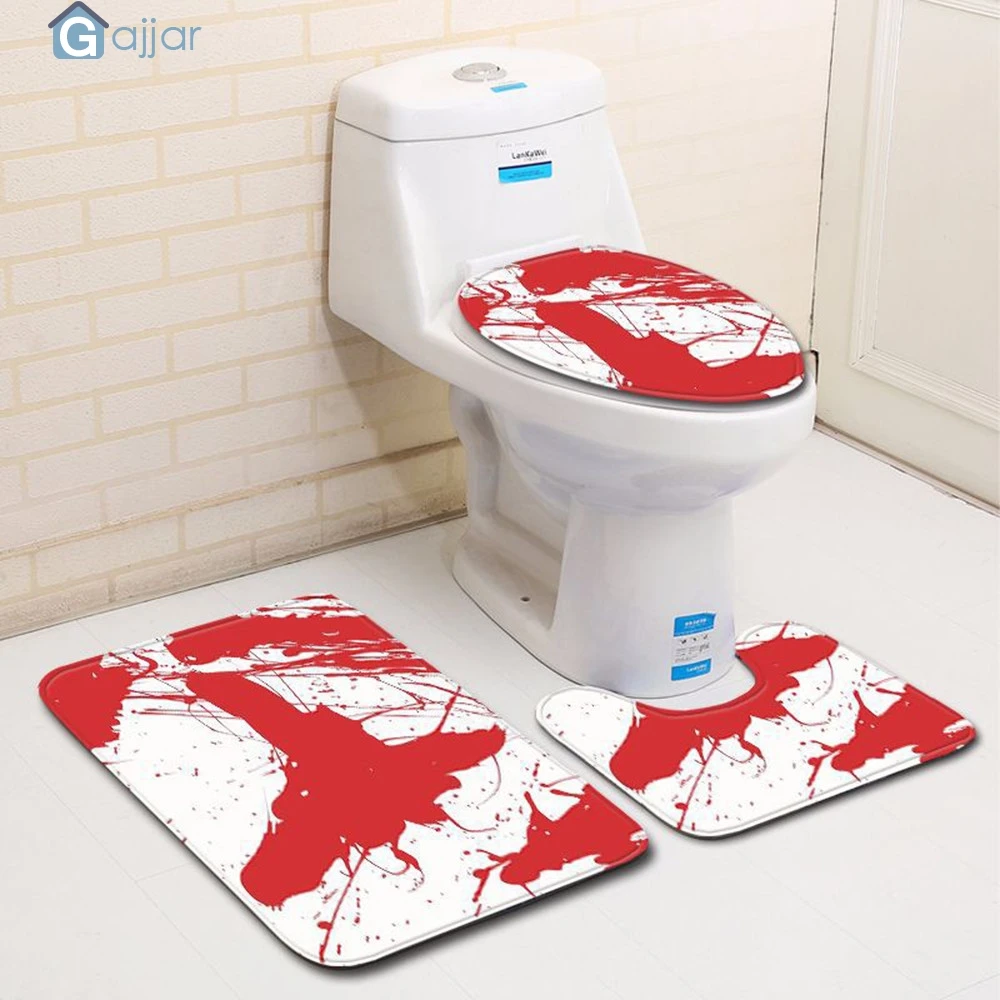 3pcs Set Halloween Style Bathroom Decor Non Slip Floor Mat Bath