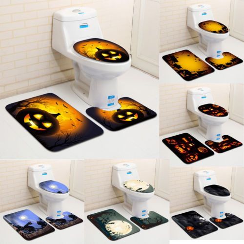 New Halloween Bathroom Toilet Seat Cover Non Slip Pedestal Rug Lid