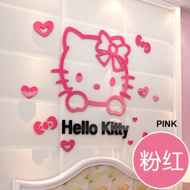 Hello Kitty 3d Wall Decal Room Decor Wall Sticker Acrylic Etsy