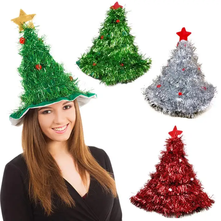 Mfqq New Tinsel Christmas Tree Hat Headband Xmas Party Fancy Dress