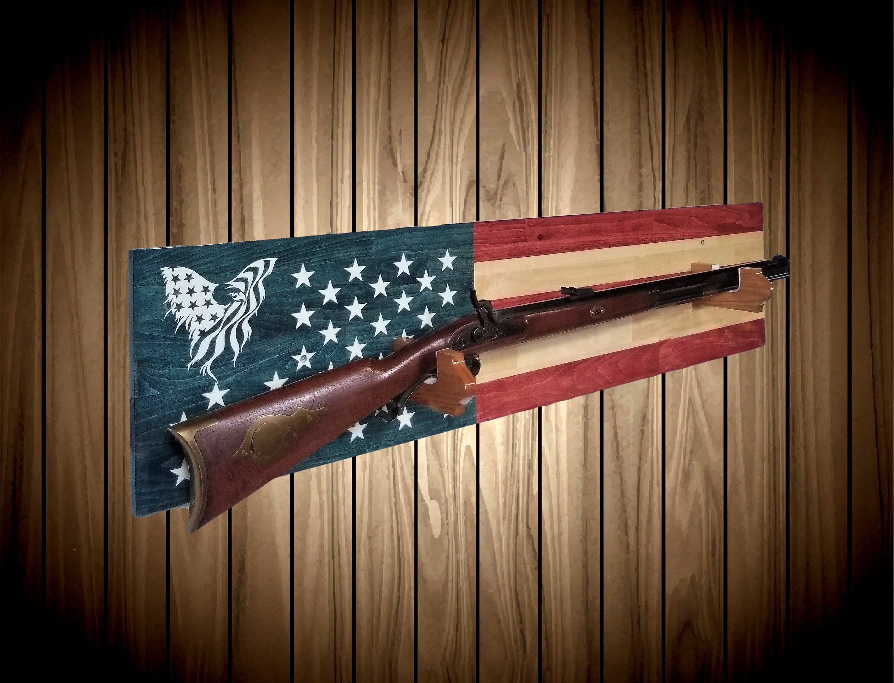 American Eagle Flag Gun Rack Wall Display Rifle Shotgun Usa