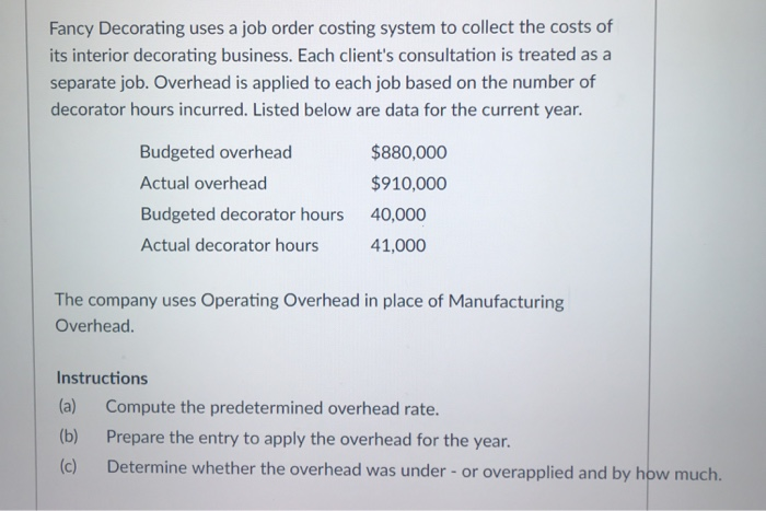 Solved Fancy Decorating Uses A Job Order Costing System T