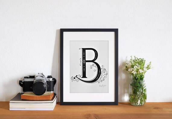 Monogram Print Letter B Wall Decor Wedding Gift Letter Etsy