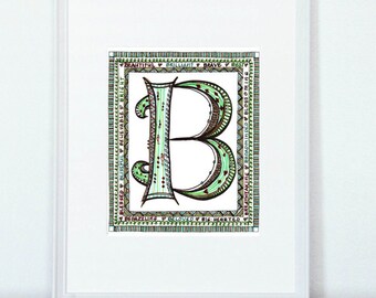 B Watercolor Monogram Letter Print Wall Art B Wall Art Large