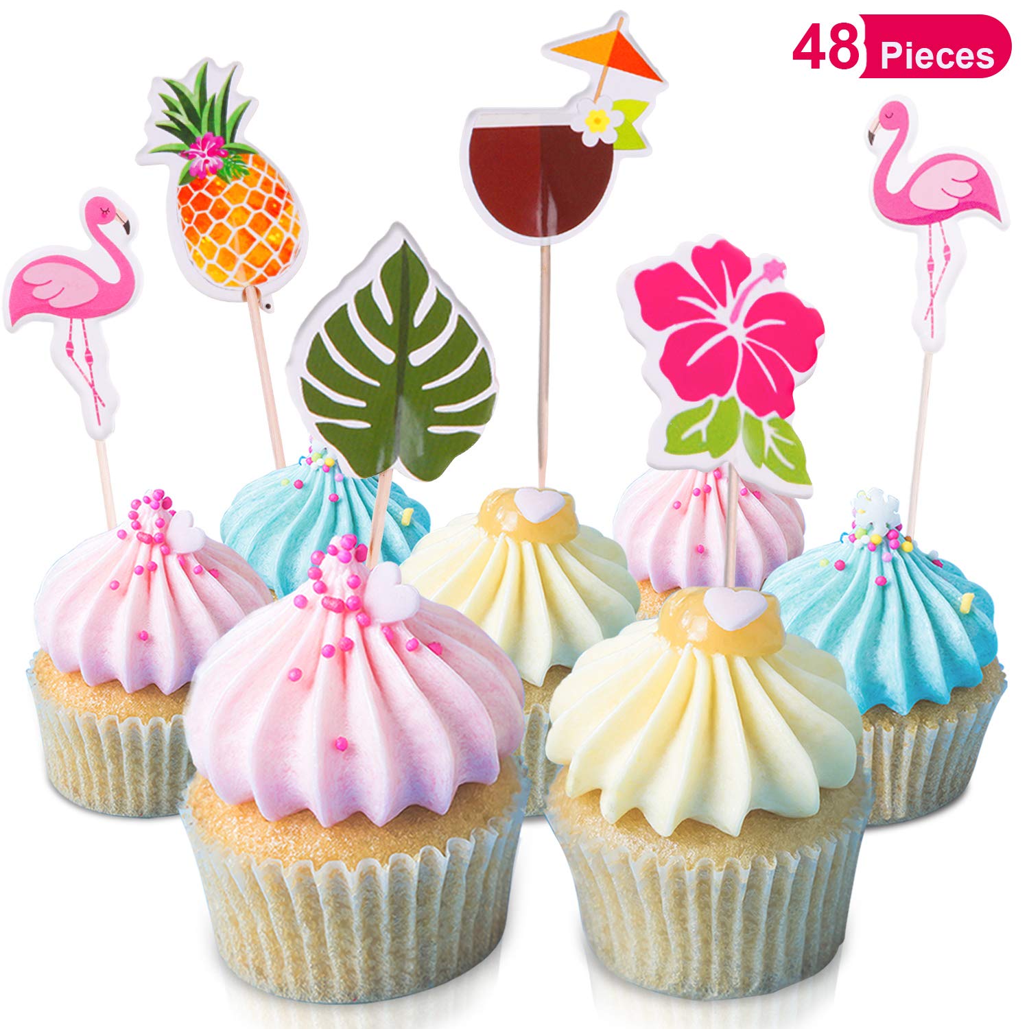 48 Pieces Hawaiian Tropical Luau Cupcake Toppers Summer Party